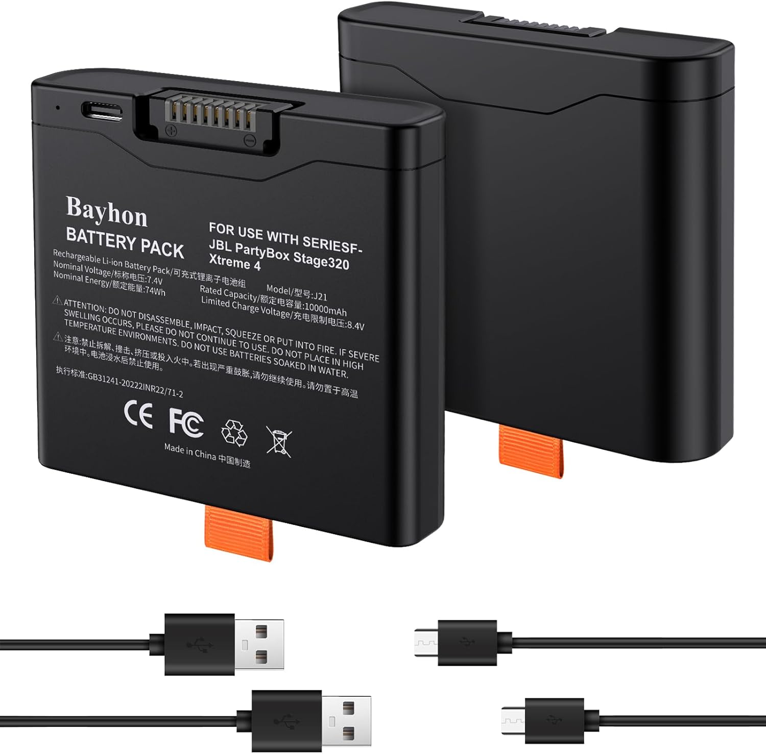 Introducing the 10000mAh 7.4V 74Wh Rechargeable Lithium-ion Spare Battery, the ultimate power solution for your JBL PartyBox Stage 320 and Xtreme 4 Portable Speakers. Designed as a perfect replacement for the JBL Battery 400, this high-capacity battery ensures that your music never stops, providing you with the energy needed for extended playtime at parties, gatherings, or outdoor adventures. With its robust construction and advanced lithium-ion technology, you can trust this battery to deliver reliable performance and longevity, keeping your speakers charged and ready for action.