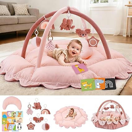 Crafted with your baby’s safety and comfort in mind, this play mat is made from soft, high-quality materials that are gentle on delicate skin. The machine-washable pad ensures that maintaining a clean and hygienic play area is effortless, allowing you to focus on creating precious memories with your little one. The thoughtfully designed cards included in the set promote visual stimulation and cognitive development, making this play gym an all-in-one solution for your baby’s early learning needs.
