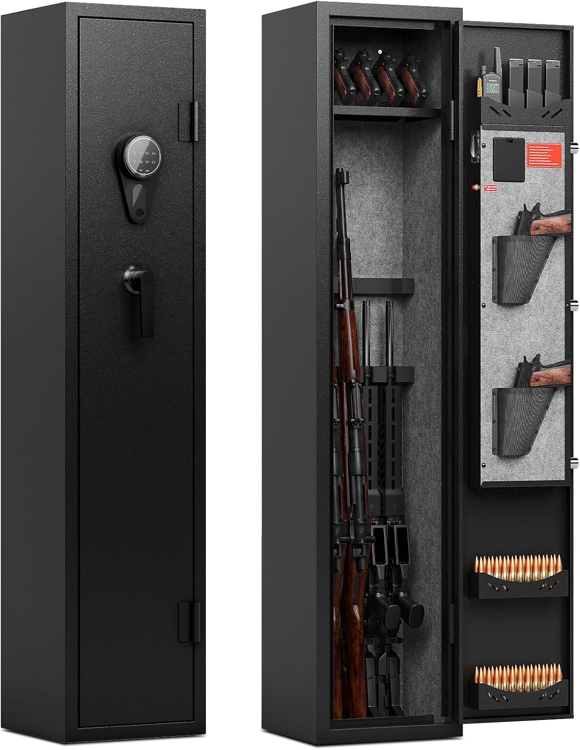 Safety is paramount, and this gun safe is engineered with advanced locking mechanisms to deter theft and unauthorized access. The spacious interior provides ample room for multiple firearms, while the long gun safe clearance ensures that even your longest rifles fit comfortably. Invest in the 5 Rifle Gun Safe today and experience the perfect blend of security, accessibility, and organization for your firearms. Protect your investment and ensure the safety of your loved ones with this essential addition to your home.