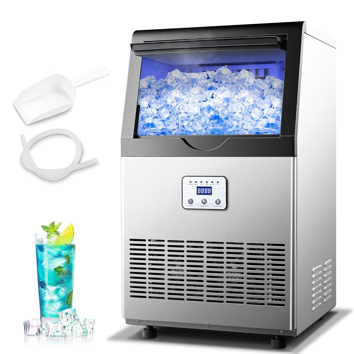 Included with your purchase is a convenient ice scoop, ensuring you can easily serve ice without any mess. Whether you’re hosting a party, running a busy bar, or simply want to keep your drinks cold at home, this ice maker is the ideal solution. Invest in quality and efficiency with our Commercial Ice Maker, and elevate your ice-making experience to new heights.