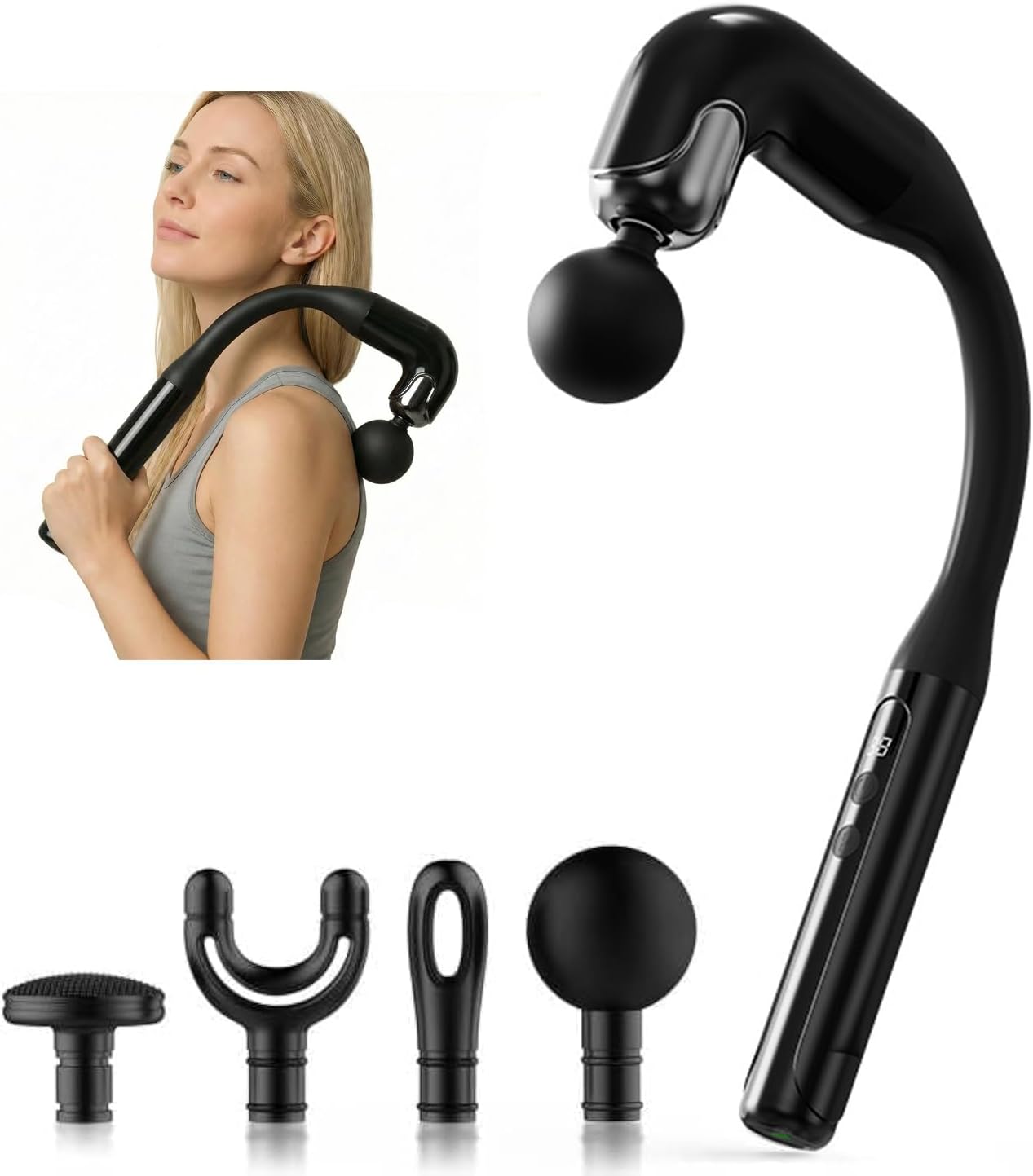 The extended handle allows for easy reach to those hard-to-access areas, ensuring a comprehensive massage experience that targets every muscle group.Tailor your massage experience to your specific needs with five adjustable speeds and three unique modes. Whether you prefer a gentle warm-up or an intense deep tissue session, this massage gun adapts to your preferences, providing a customized treatment every time. The intuitive controls make it easy to switch between settings, allowing you to focus on relaxation or recovery as needed. With its ergonomic design, you can comfortably hold the device for extended periods, making it perfect for both personal use and professional settings