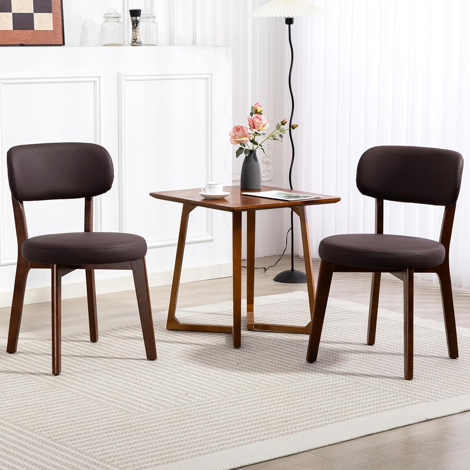Elevate your dining experience with our Mid-Century Modern Dining Chairs, expertly crafted to blend timeless design with contemporary comfort. The sturdy rubberwood frame ensures durability and stability, supporting up to 250 lbs, making these chairs a reliable choice for any dining setting. The rich brown finish adds a touch of warmth, while the sleek lines and minimalist aesthetic embody the essence of mid-century modern style, seamlessly integrating into both traditional and modern interiors.Comfort is paramount, and these chairs do not disappoint.